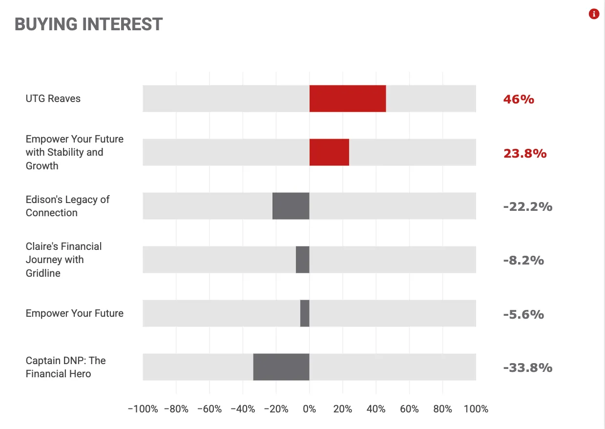 Our client UTG Reaves ran its commercial through Generative AI Focus Group Testing, and a few clear edits emerged. We updated the script to highlight the fund’s longevity, removed an image respondents didn’t relate to, and tightened language to clarify the offering. After implementing these adjustments, the campaign showed a measurable lift in performance—without changing the media plan.